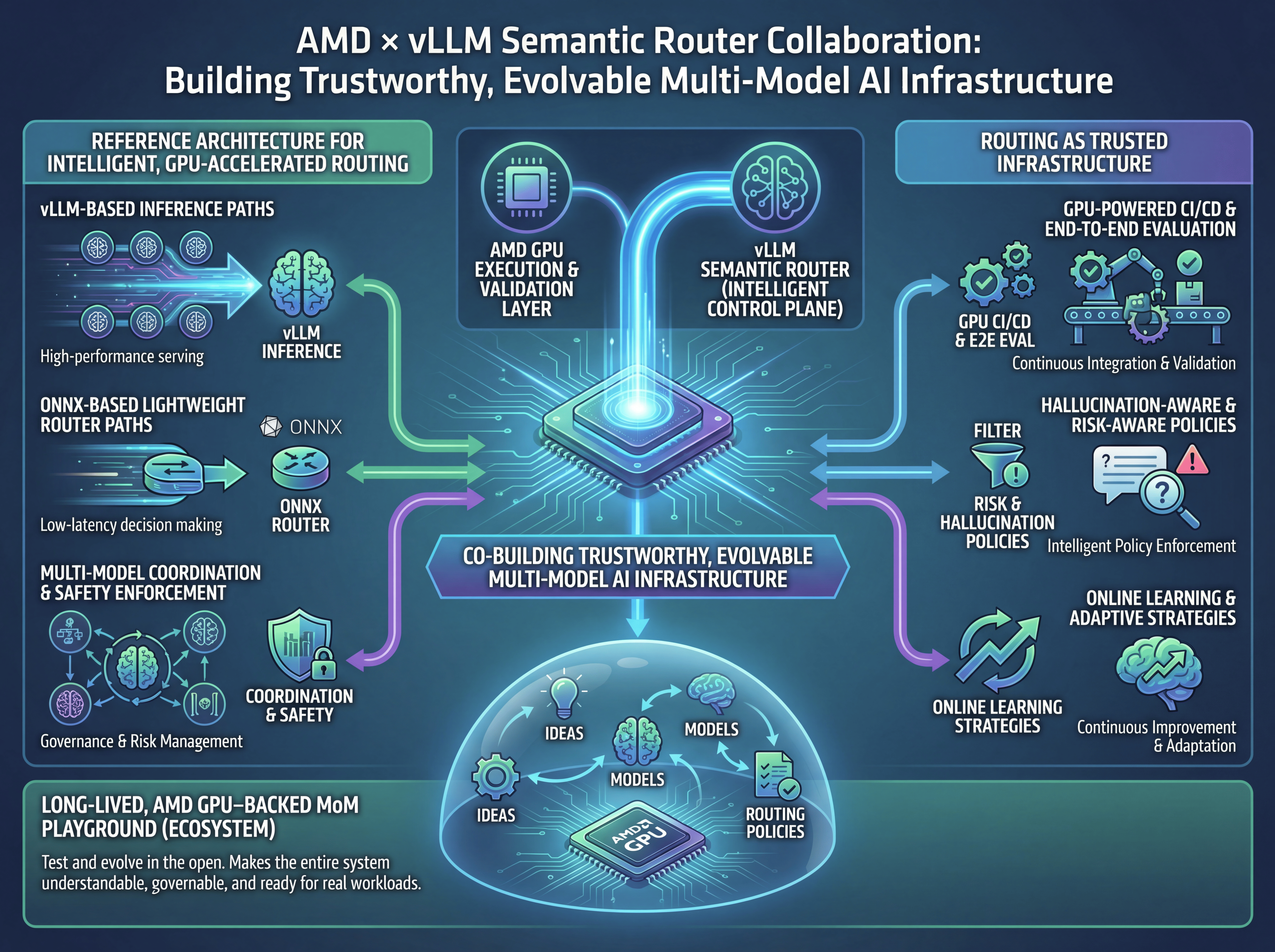 In short, this is about co-building trustworthy, evolvable multi-model AI infrastructure—with AMD GPUs as a core execution and validation layer, and vLLM Semantic Router as the intelligent control plane that makes the entire system understandable, governable, and ready for real workloads.